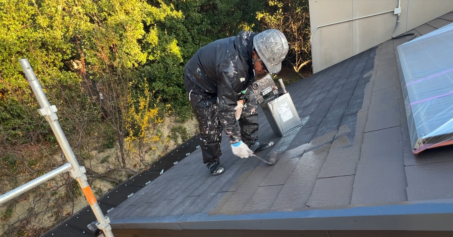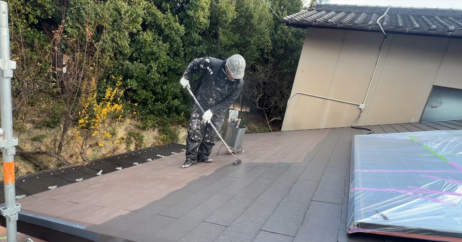【香川県高松市国分寺町】セミフロンスーパールーフ上塗り 香川県高松市外壁塗替えなら一級塗装技能士の手塗りで長持ち!ユウ建装!