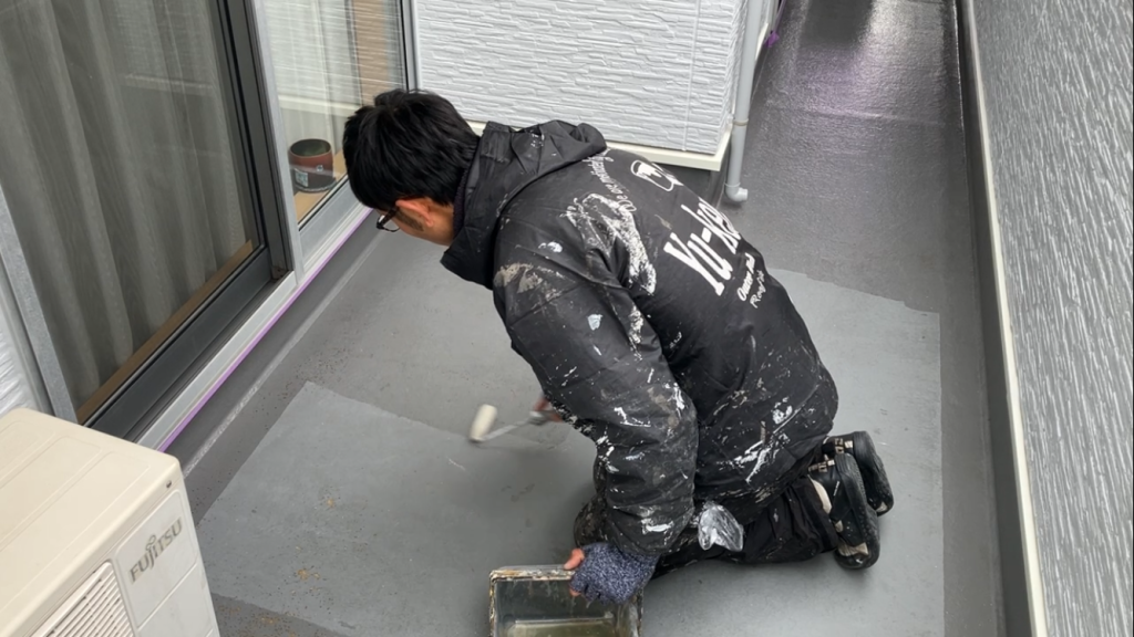ベランダ防水塗装の下塗り・中塗り