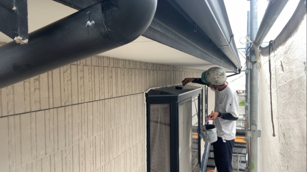 また、出窓板金や庇などの鉄部には、下塗りとして錆止め塗料を塗布しました。