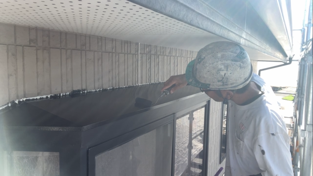 今日は付帯部の上塗りと、屋根の下塗りを行いました。