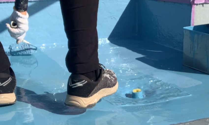2回目の塗布を行うことで膜厚をさらに確保し、強靭で長持ちする防水層を完成させていきます。