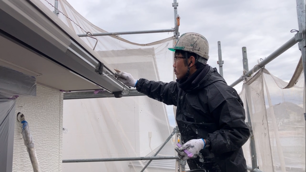 外壁作業と並行して、軒樋・鼻隠しの塗装も進めました。