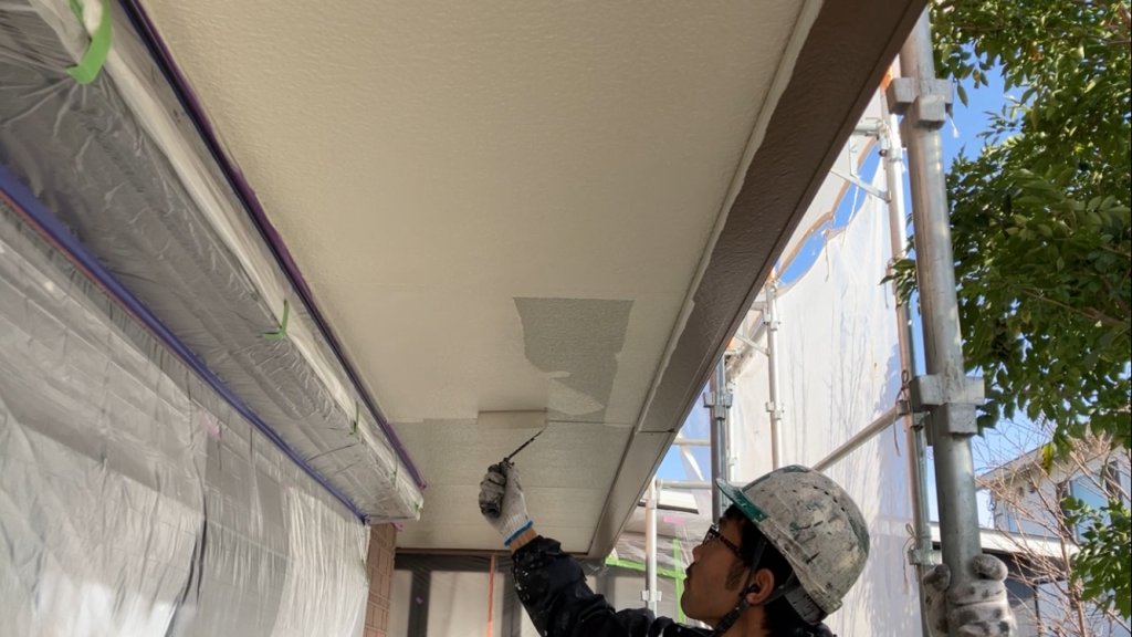 軒天井の塗装作業を行いました
