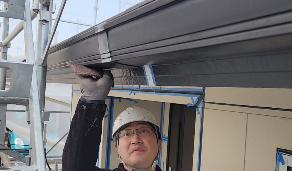 この下地処理を行うことで、塗料が雨樋にしっかりと密着する状態を作っていきます。