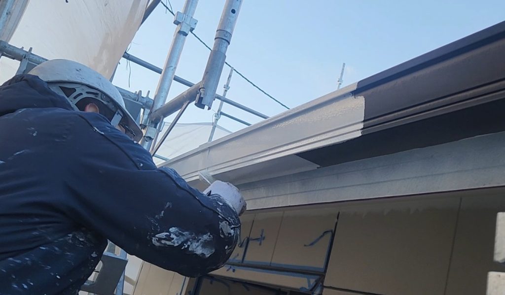 本日は雨樋の目荒らし作業から中塗り作業までを行いました。