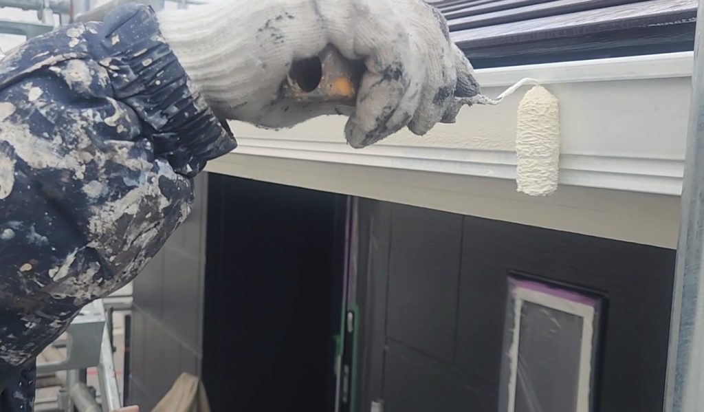 雨樋の追加中塗り作業