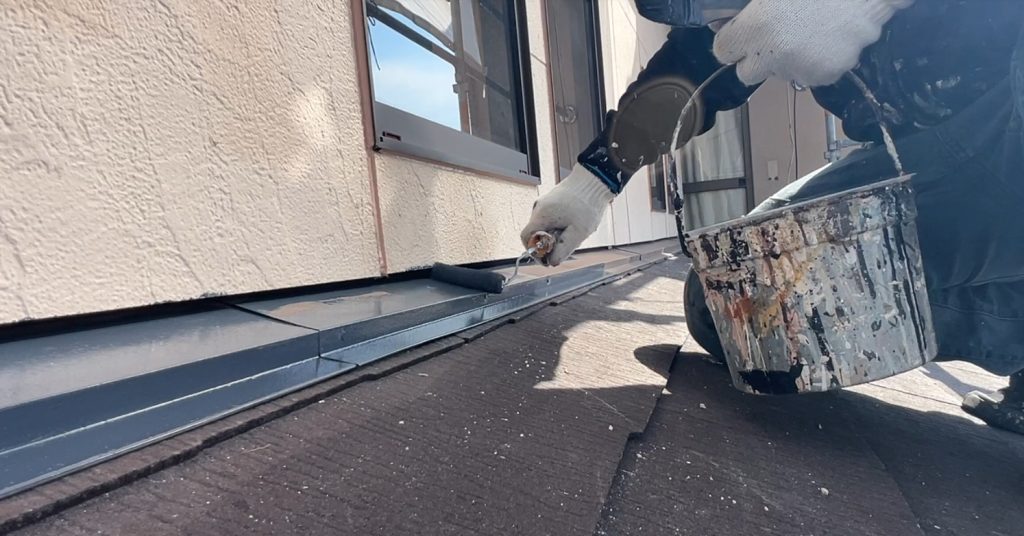 本日は金属部にサビ止め塗料を塗布し、上塗り材がしっかり密着する強い下地を形成しました。