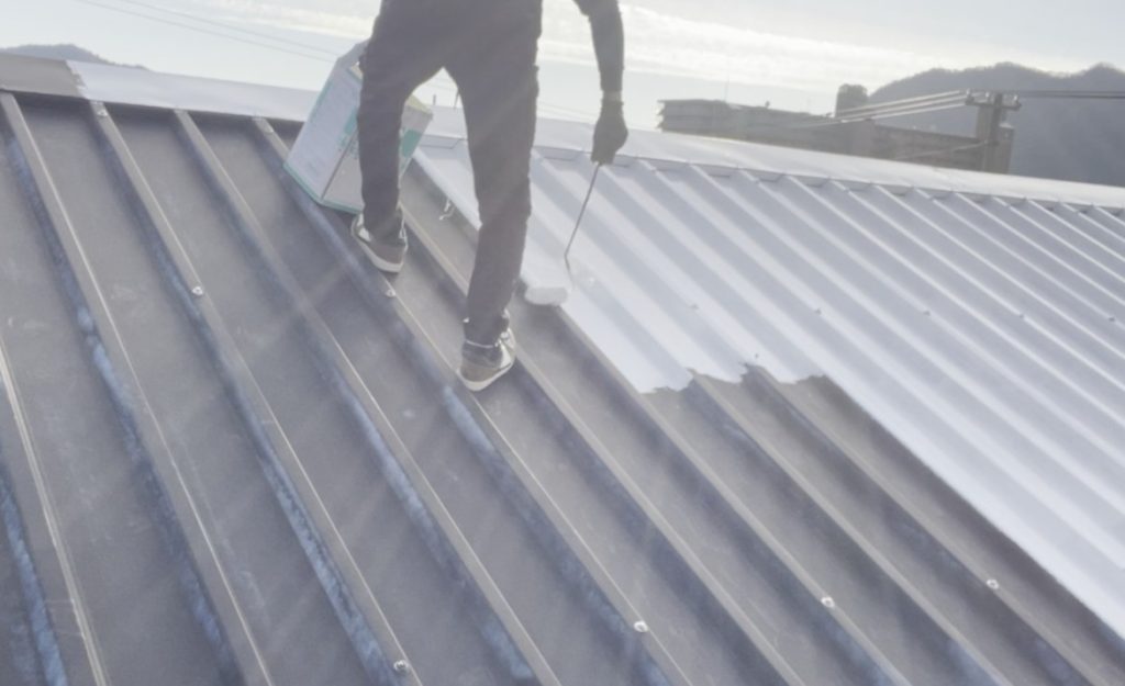 瓦棒屋根のサビ止め(下塗り)作業