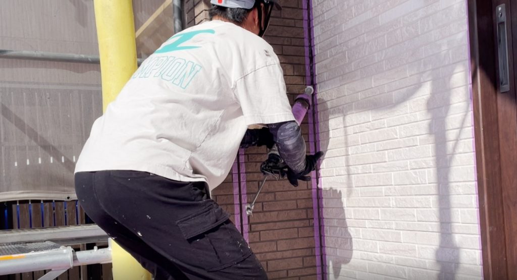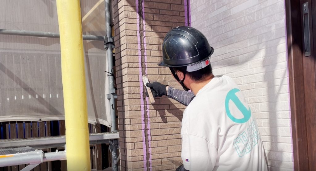 本日はシーリング工事の中心となる「シーリング材の充填」と、仕上げとして重要な「ならし作業」を行いました。