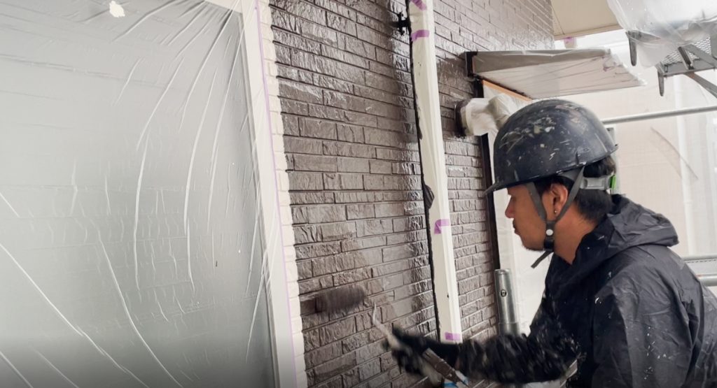 今回は、デザイン性の高い仕上がりが得られる〈Wトーン仕上げ〉を採用し、目地と表面の色を変えて塗装を進めていきました。
