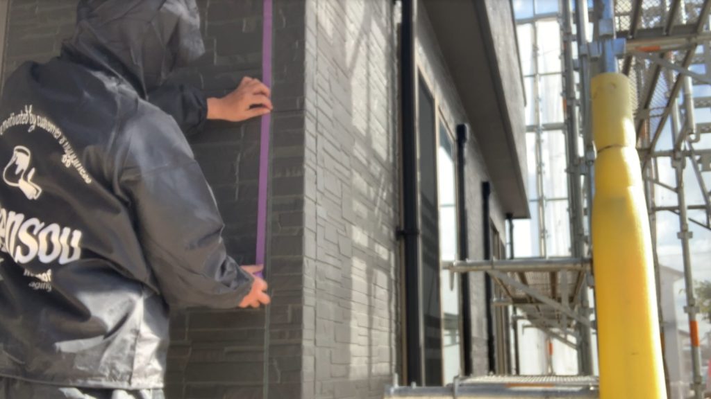 本日はシーリング工事に伴うマスキング養生作業を行いました。