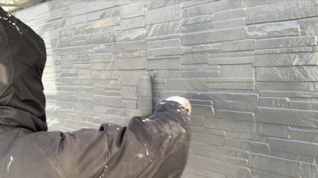 ご覧のように、中塗りと上塗りの色をあえて変えて施工しています。
