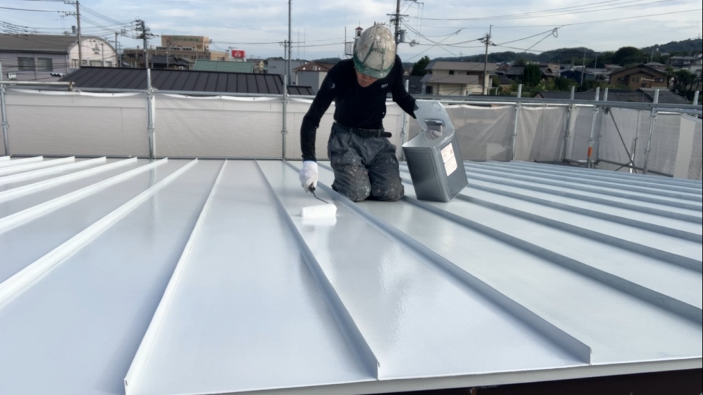 屋根は建物の中でも特に紫外線や雨風の影響を強く受ける部分ですので、下塗りでしっかりと密着性を高めた上で、中塗り・上塗りと重ねることで強い塗膜を形成していきます。