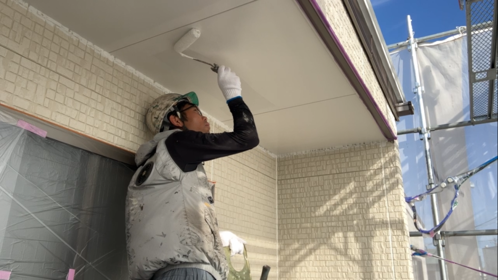 軒天井は湿気がたまりやすく、経年による劣化が見られることも多いため、この下塗り工程が欠かせません。