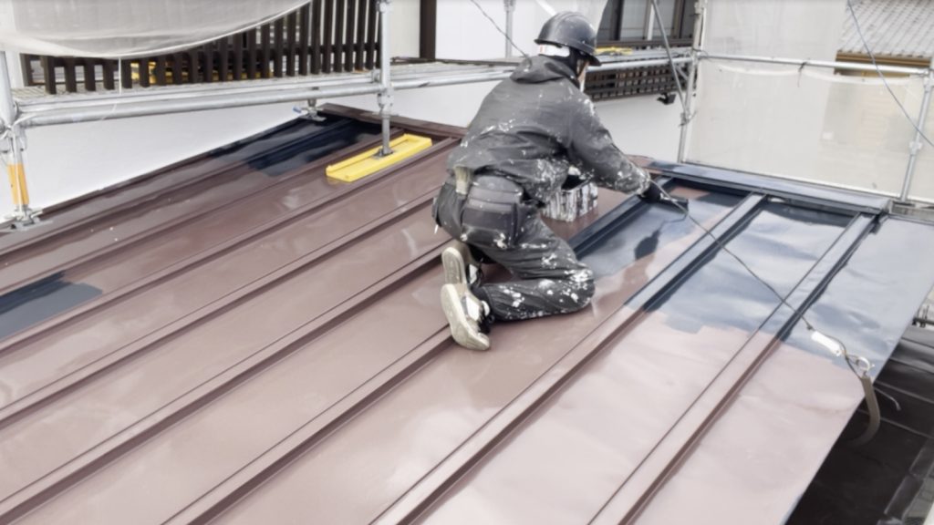 中塗りまでで形成した塗膜を仕上げる最終工程となり、屋根の耐久性と美観を完成させる重要な作業です。
