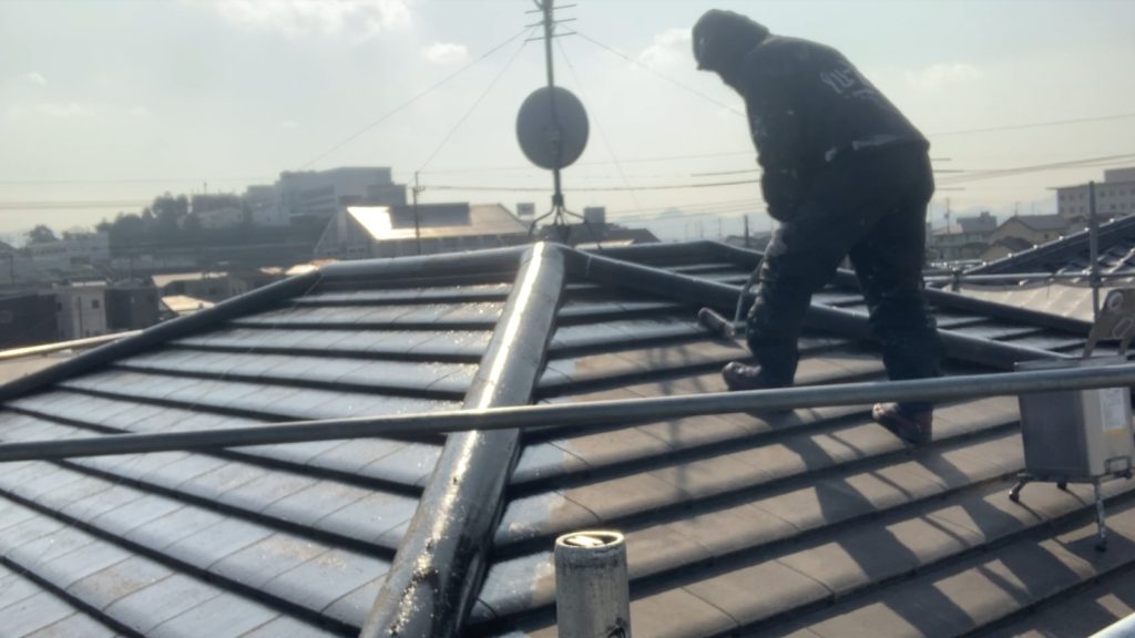 本日は、高松市内の現場にて、屋根塗装の命とも言える「下塗り」作業を行いました。