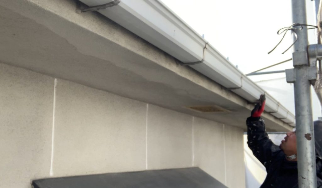 【香川県高松市香川町】雨樋のケレン目荒らし作業で塗料の密着性アップ 香川県高松市外壁塗替えなら一級塗装技能士の手塗りで長持ち!ユウ建装!