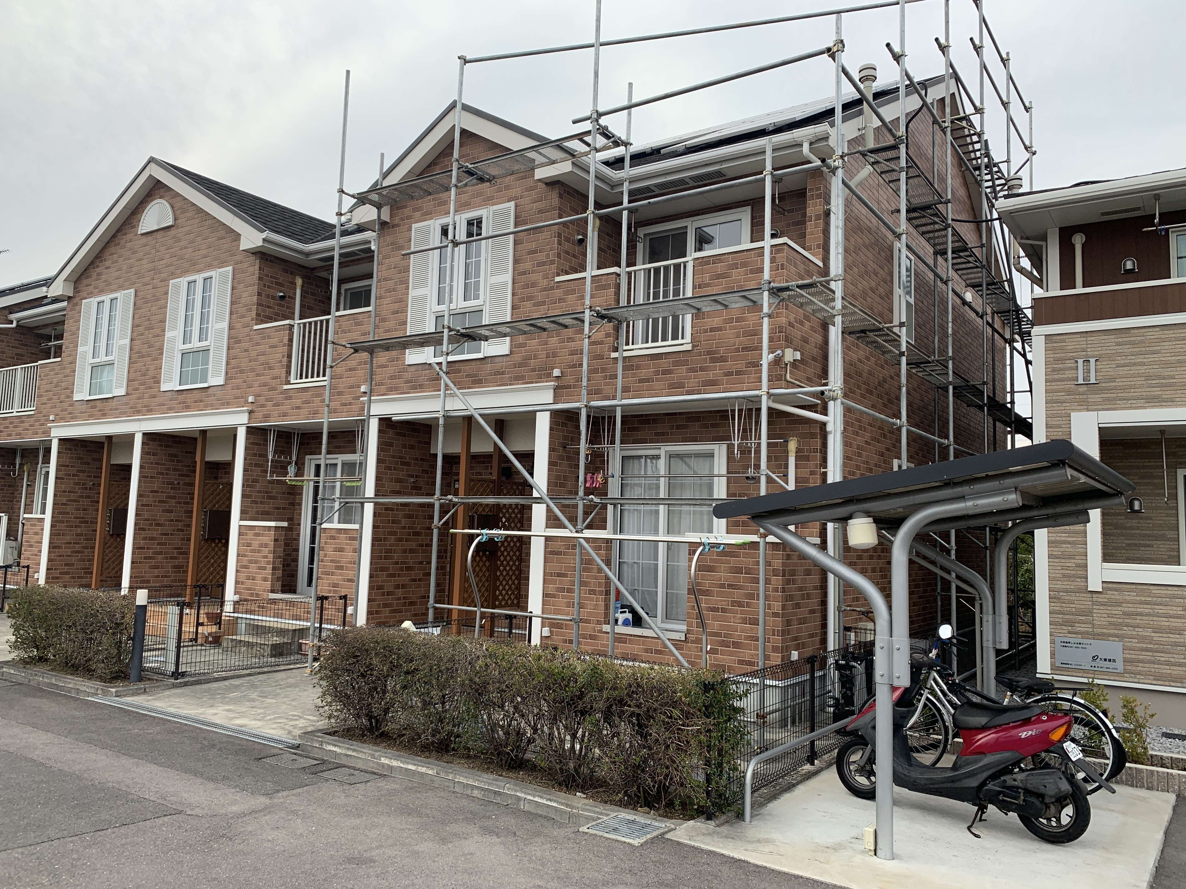香川県高松市檀紙町某アパート外壁塗装塗装、塗り替え工事の本日の作業です