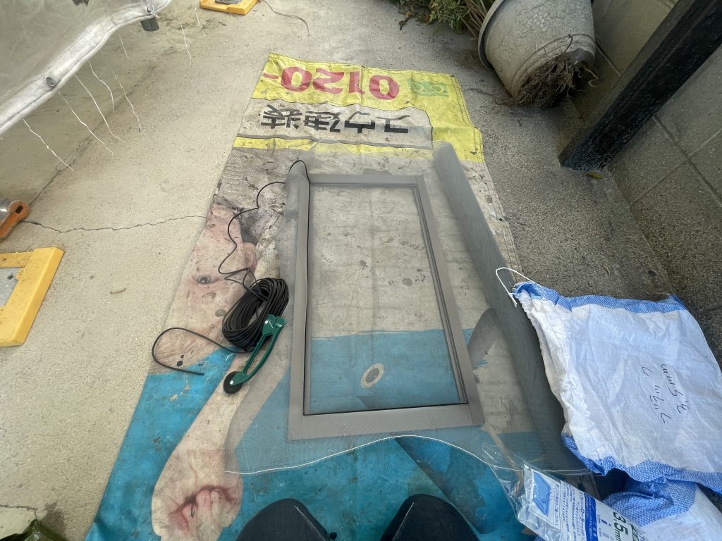 経年劣化により破れていた網戸は、新しい網に貼り替えを行いました。