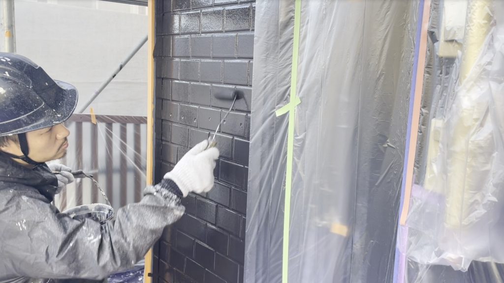 目地部分や細かな凹凸の奥まで塗料が行き渡るよう丁寧に施工しました。