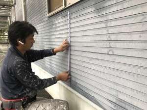 壁と壁の間(板間)のコーキングの撤去作業になります。ここからの雨水の浸入を防ぎます。