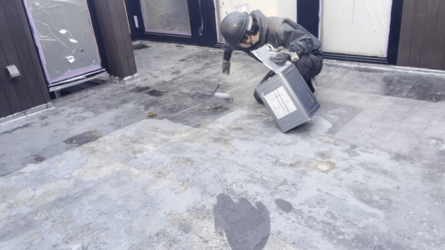 ベランダ防水の核心|「オルタックエース」1回目!塗るのではなく「厚く乗せる」職人技