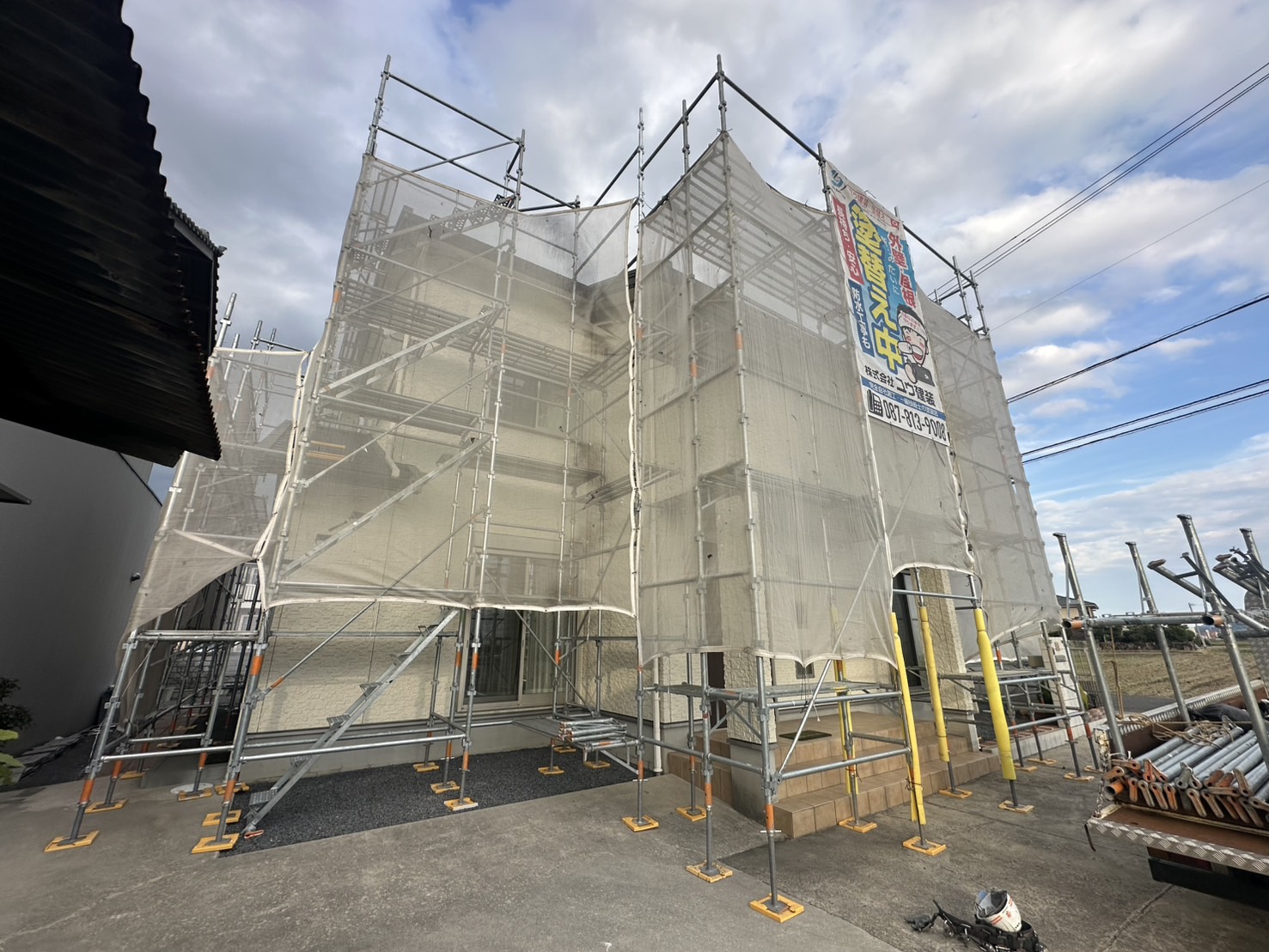 【香川県高松市由良町】足場着工 香川県高松市外壁塗替えなら一級塗装技能士の手塗りで長持ち!ユウ建装!