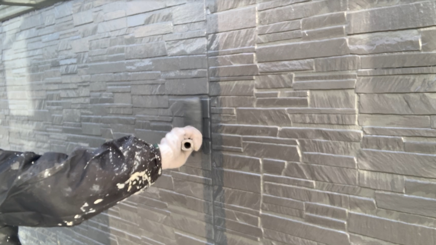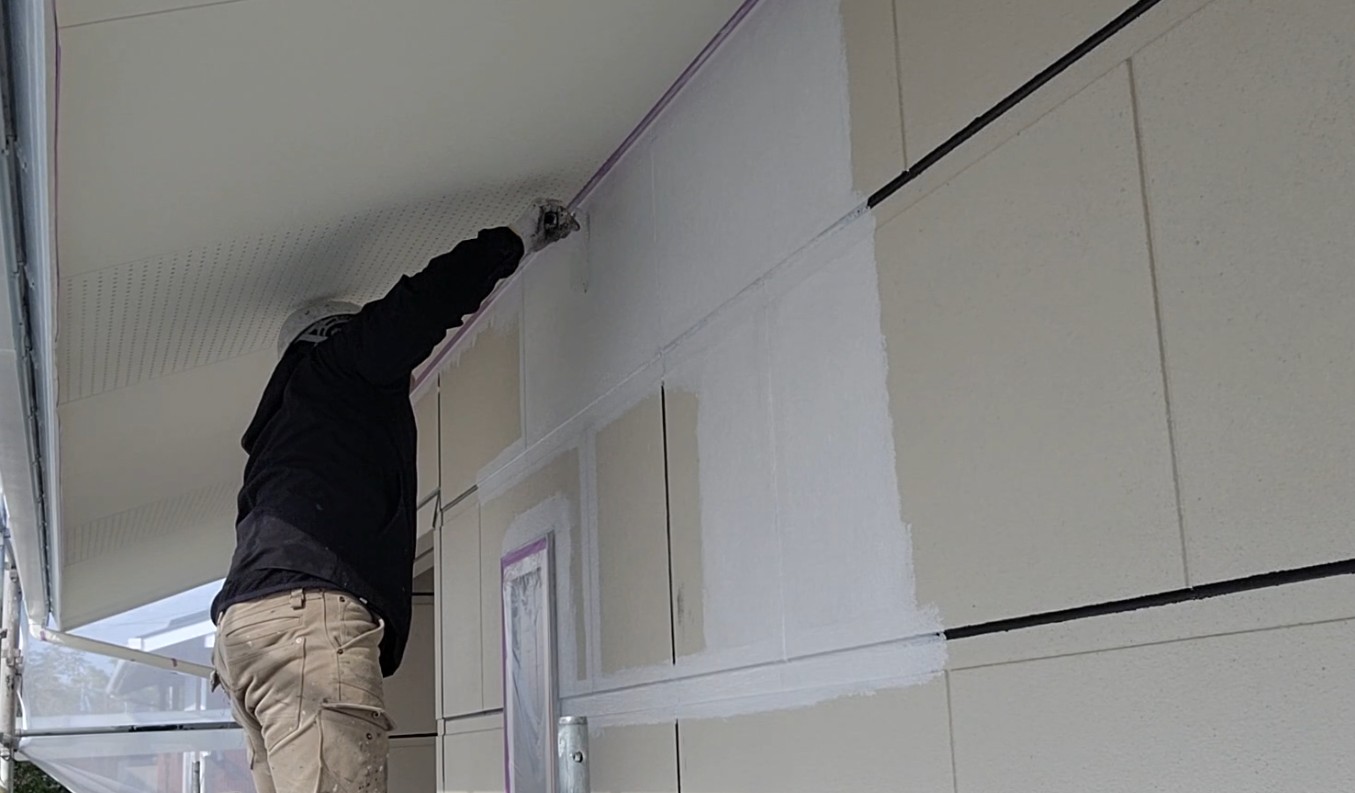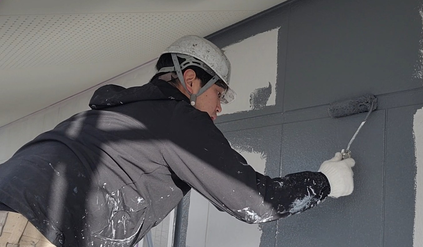 【香川県高松市仏生山町】外壁下側の中塗り作業|ダブルトーン塗装で立体感のある仕上がりへ 香川県の外壁リフォームならユウ建装!