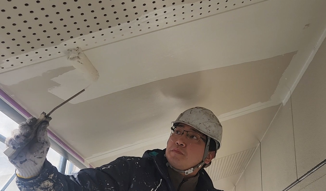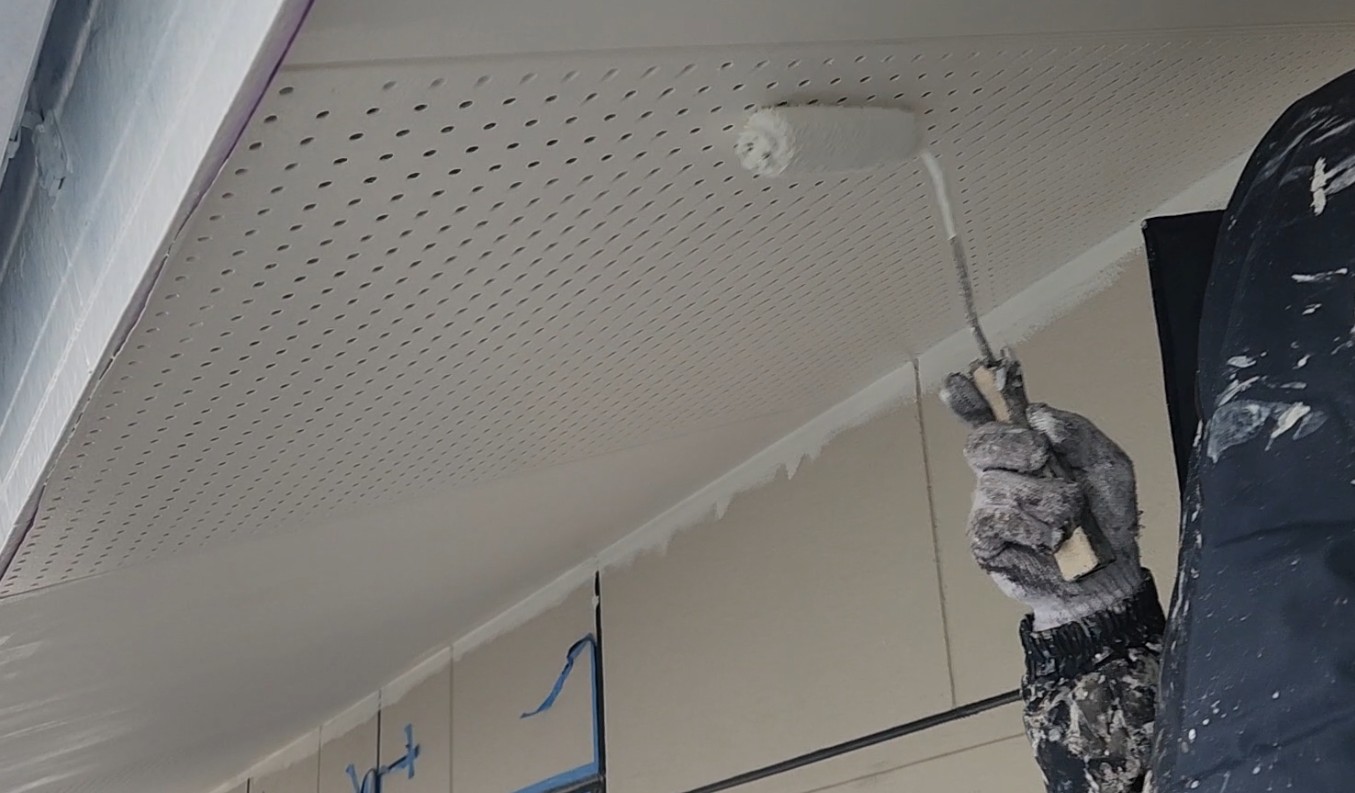 【香川県高松市仏生山町】軒天井中塗り水性ケンエース 香川県高松市外壁塗替えなら一級塗装技能士の手塗りで長持ち!ユウ建装!