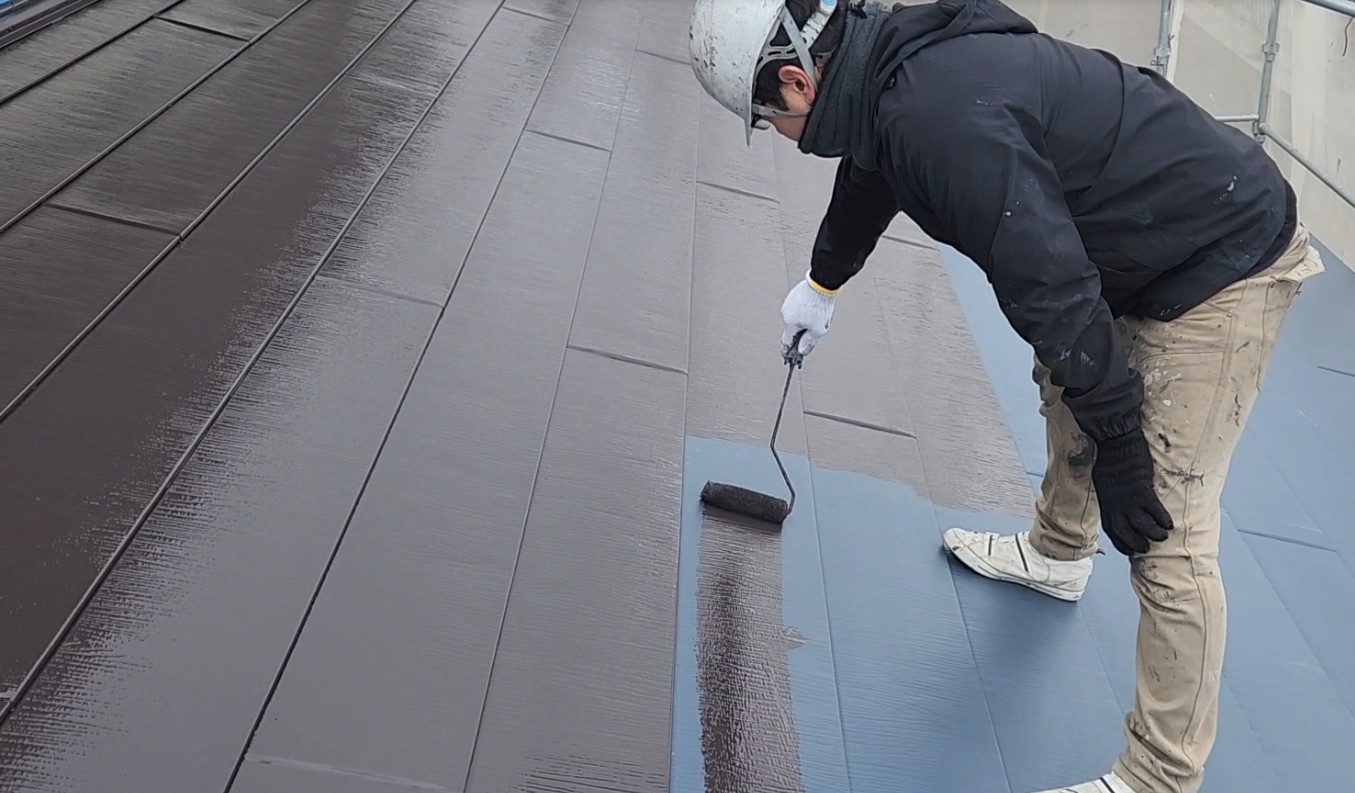 【香川県高松市仏生山町】屋根中塗りセミフロンスーパールーフ無機塗料 香川県高松市外壁塗替えなら一級塗装技能士の手塗りで長持ち!ユウ建装!