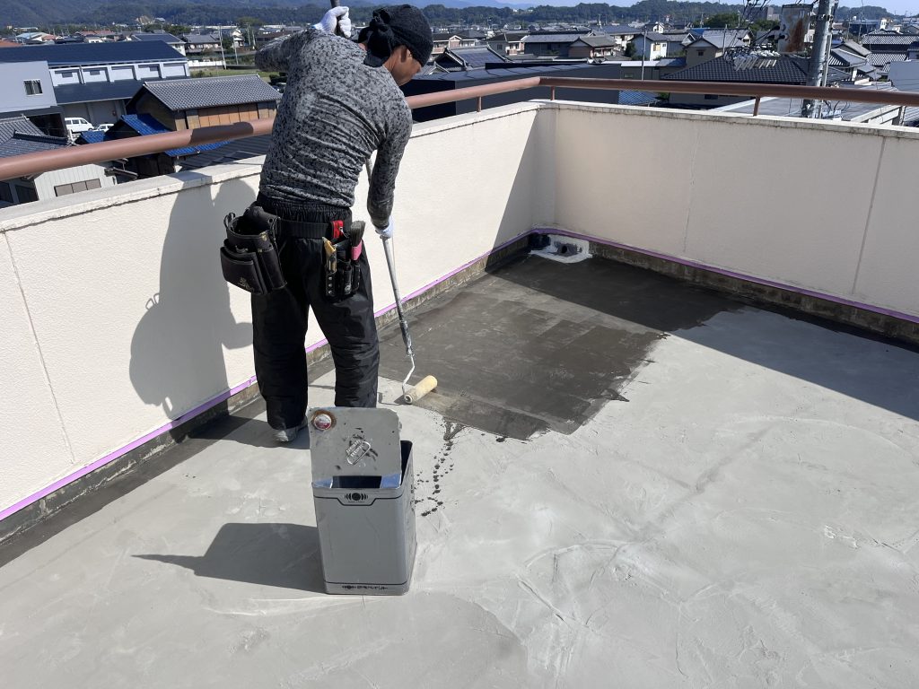 ウレタン防水のトップコートになります、紫外線からの劣化を防ぐ為にたっぷり塗り込ます