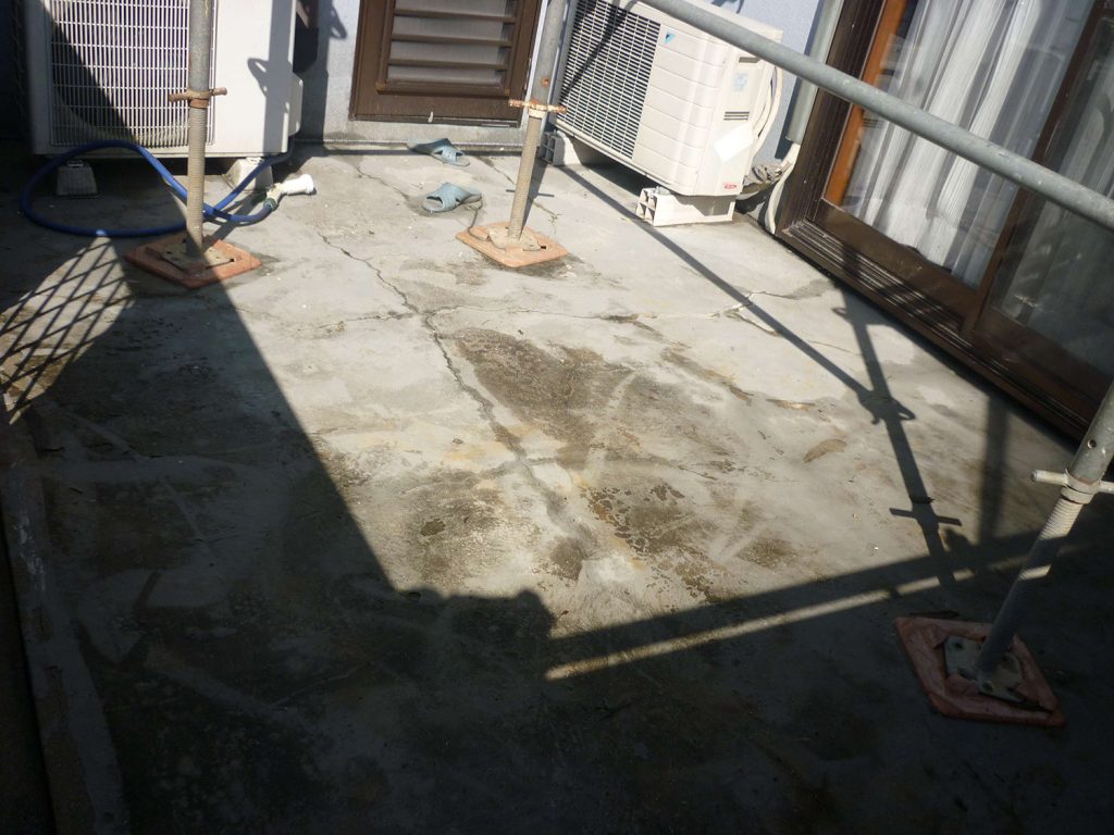 ベランダの防水もだいぶ痛んで劣化していたのでグラインダーで綺麗に下地処理をしFRP防水をしました。